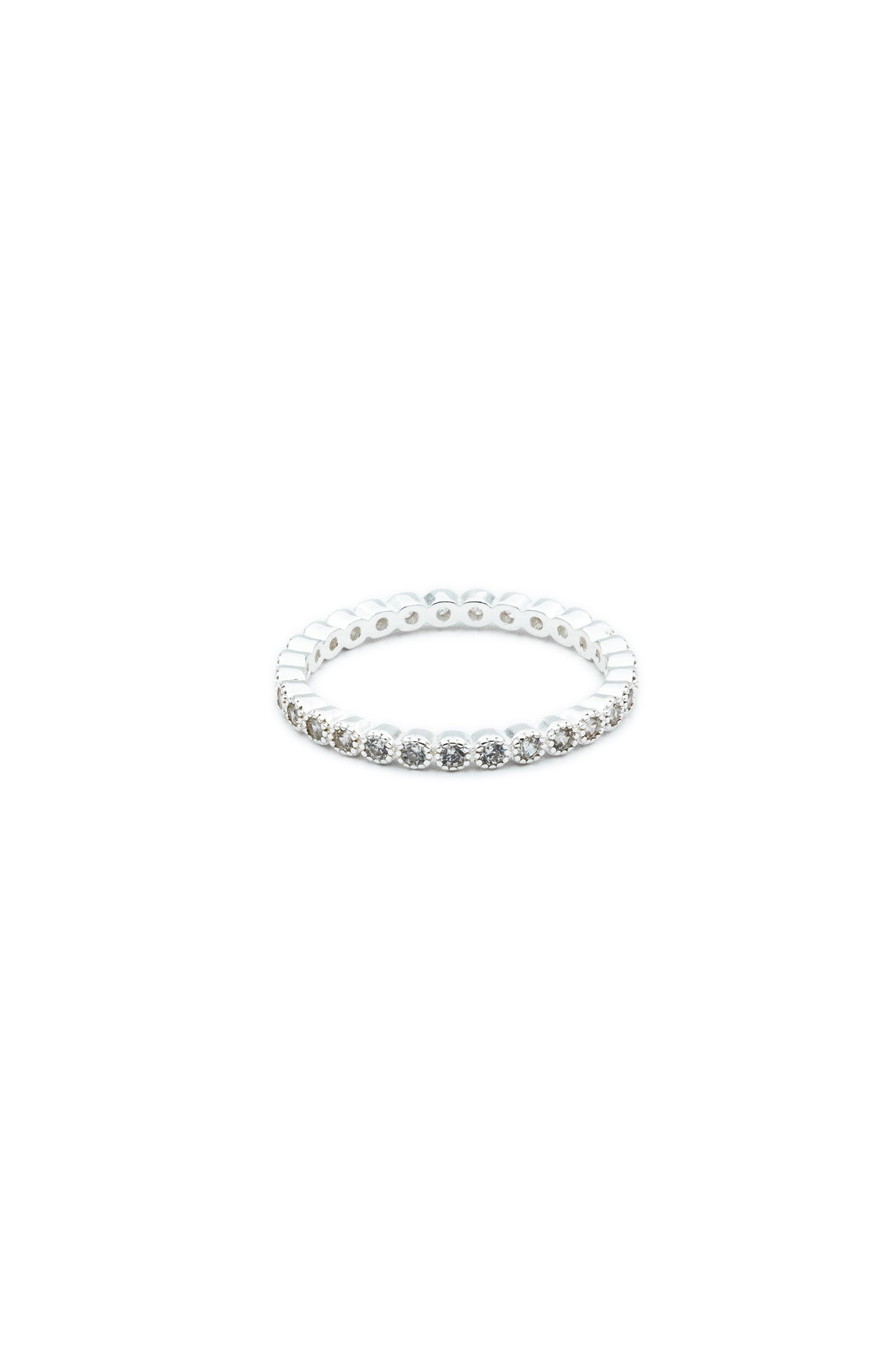 Crafted from sterling silver and adorned with a full band of shimmering stones, it catches the light with every movement. Whether worn alone or stacked, it brings just the right amount of elegance to your everyday look.