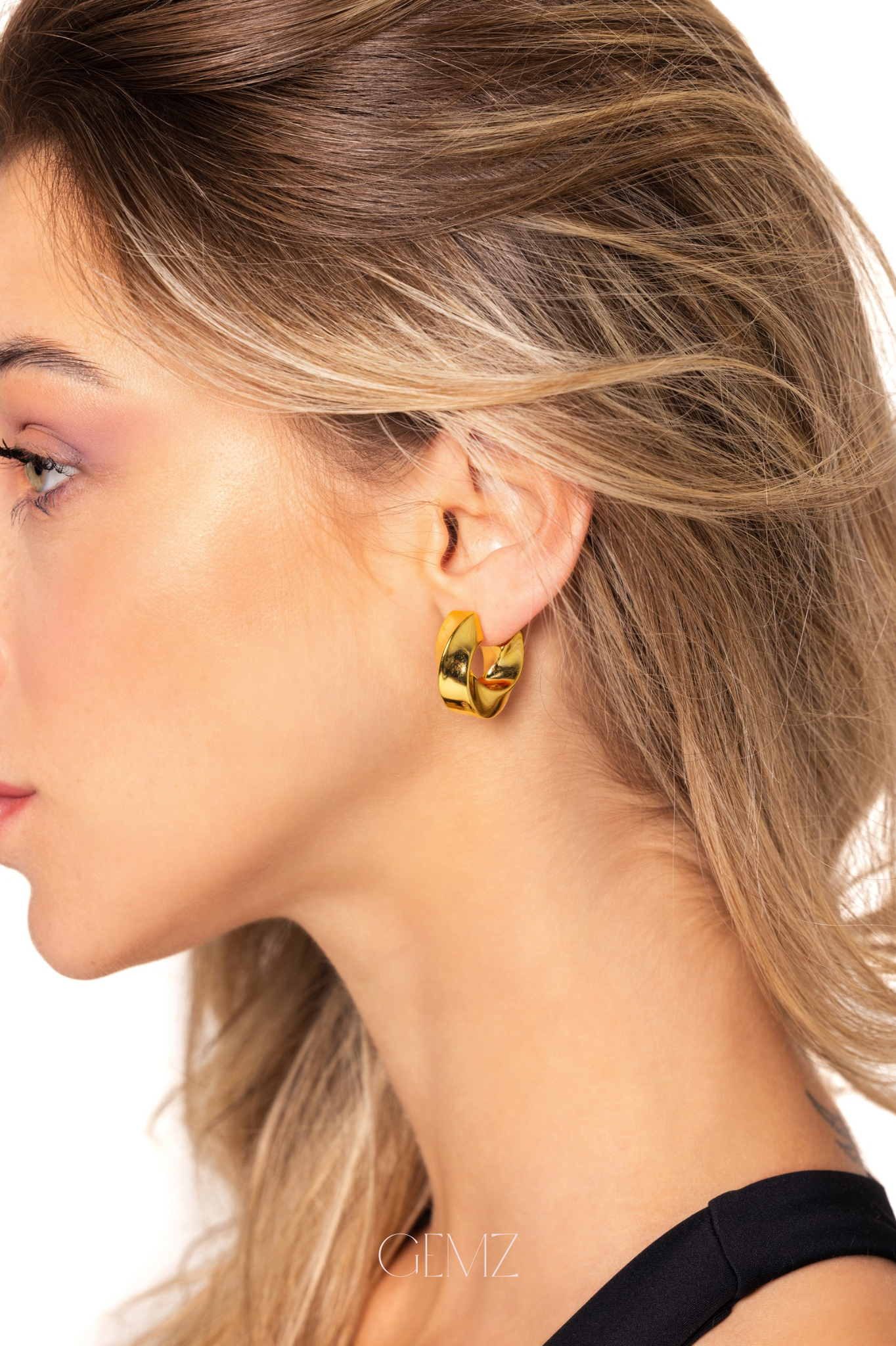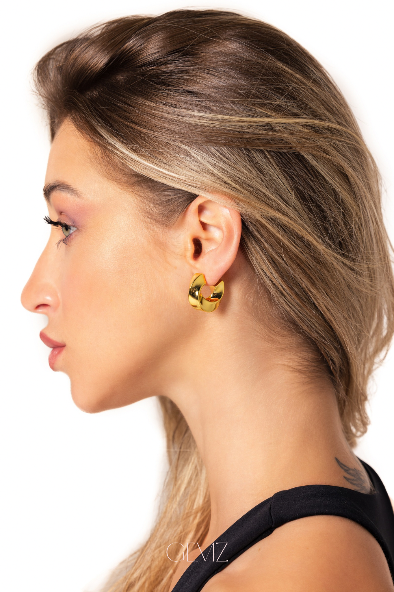Riva is bold in the most refined way. These sculptural, twisted hoops bring volume and shine without saying a word. Whether you’re dressing up or keeping it casual, Riva adds that effortless statement to every look.