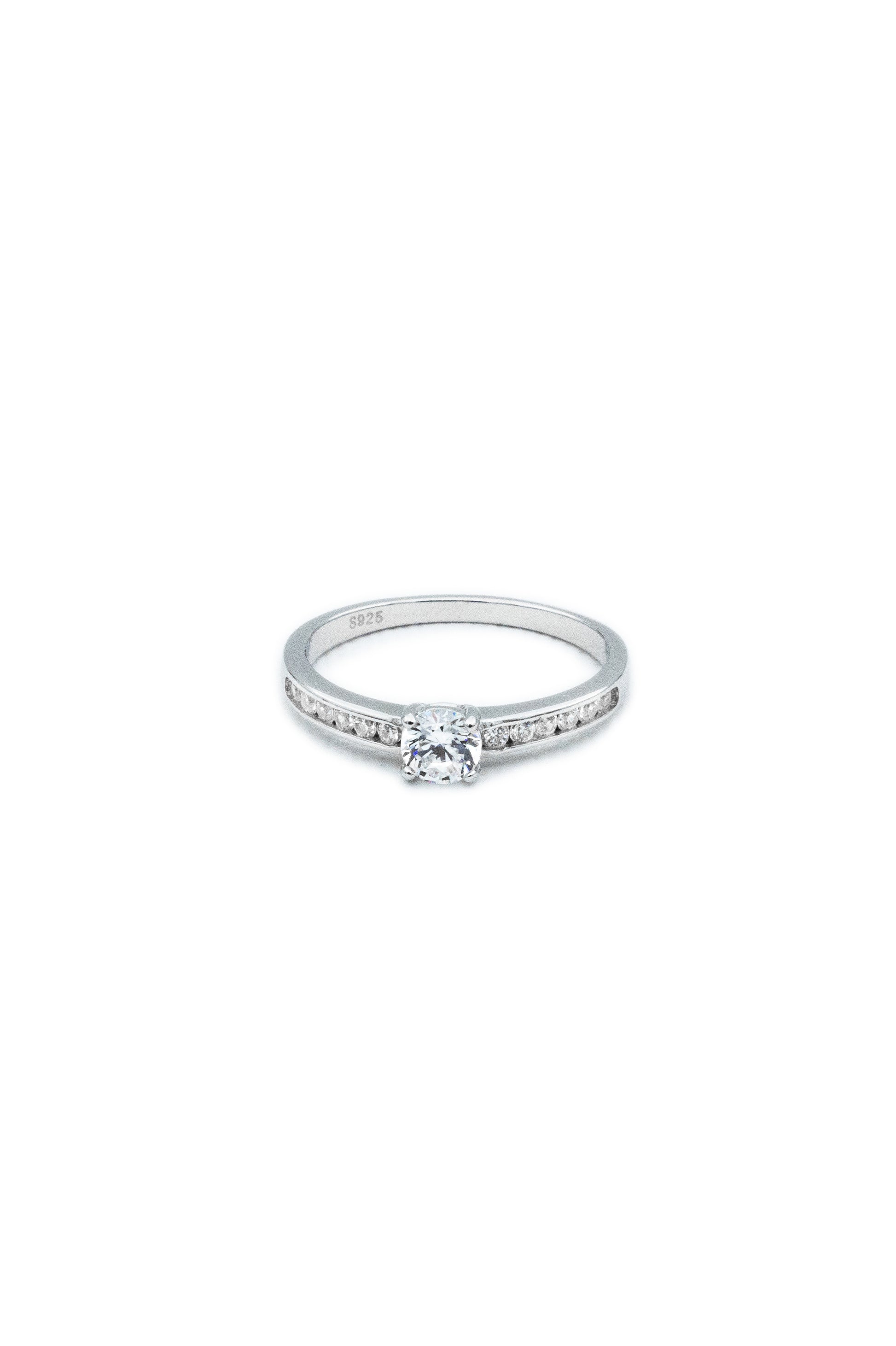 Solenne combines classic and modern elegance. Made of sterling silver, it features a central round-cut stone framed by a row of smaller stones on each side — a refined piece for those who love subtle sparkle.