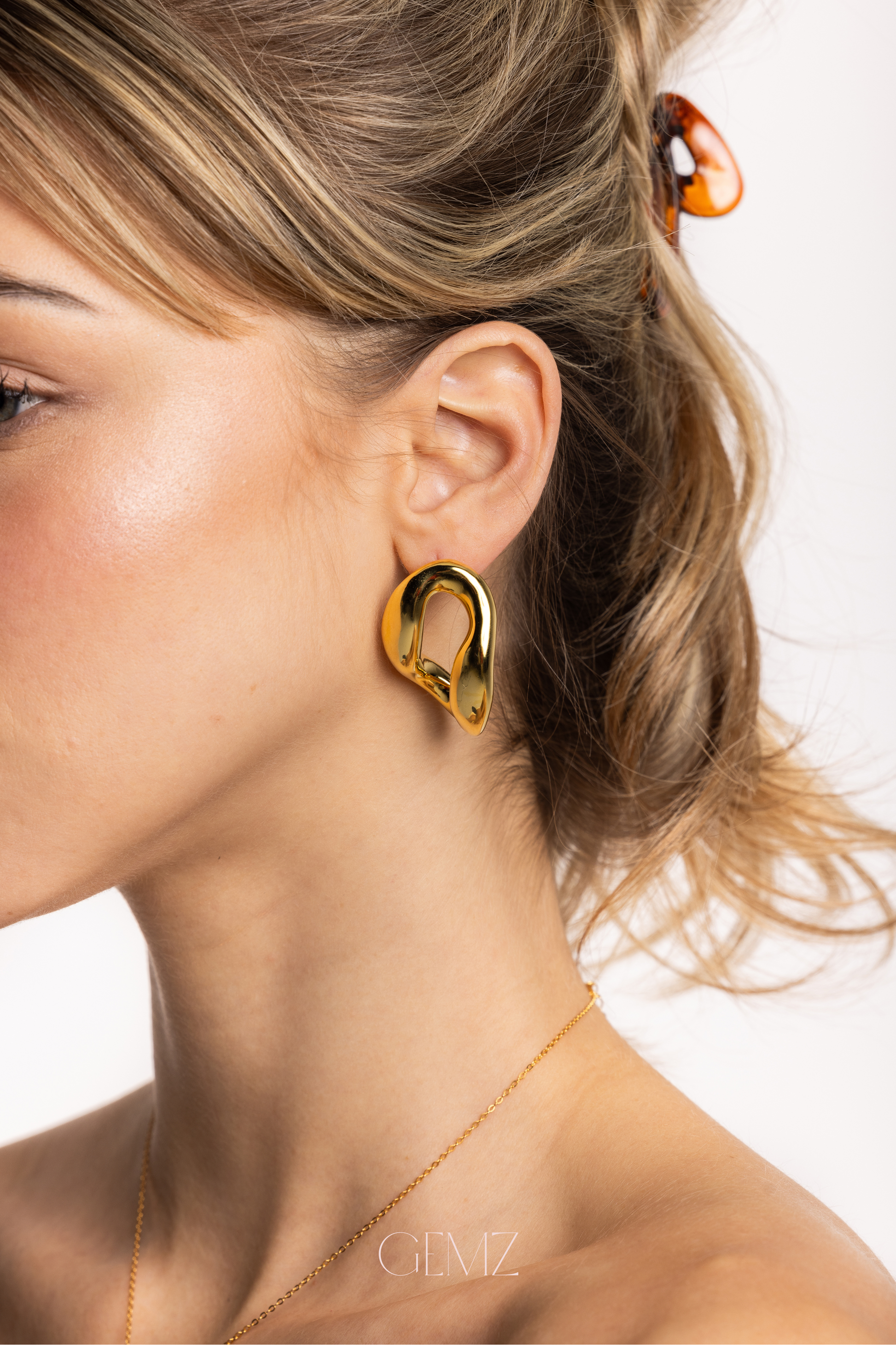 The Valorée earrings, available in both gold and silver, captivate with their artistic, fluid design. Their sculptural shape adds a contemporary edge to any outfit—whether casual or formal. A statement piece that never goes unnoticed.
